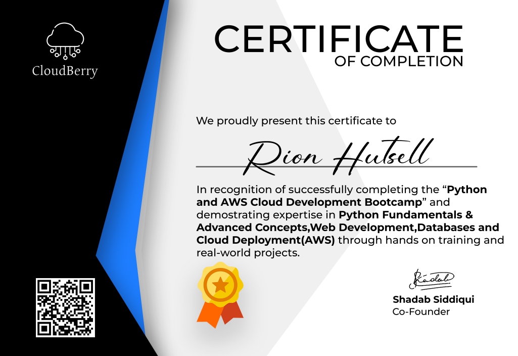 the Python and AWS Cloud Development Bootcamp with CloudBerry